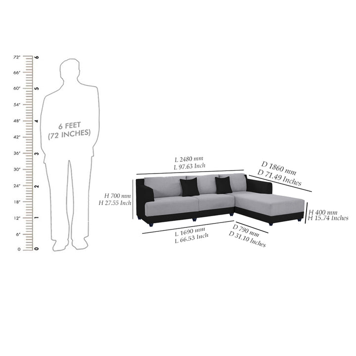 Transform your living space with the Bharat Lifestyle Marina Fabric 6 Seater Sofa Set in a bold Black & Grey color combination. Designed with a Left Hand Deewan, this stylish and spacious L-shaped sofa set adds modern elegance and everyday comfort to any living room or bedroom. Crafted with premium Nano Fabric, it offers a soft feel and high durability. The DIY (Do-It-Yourself) assembly ensures easy setup, while the 1 Year Warranty provides added peace of mind. Whether you're lounging, entertaining, or relaxing, this sofa set offers the perfect blend of luxury, style, and function.